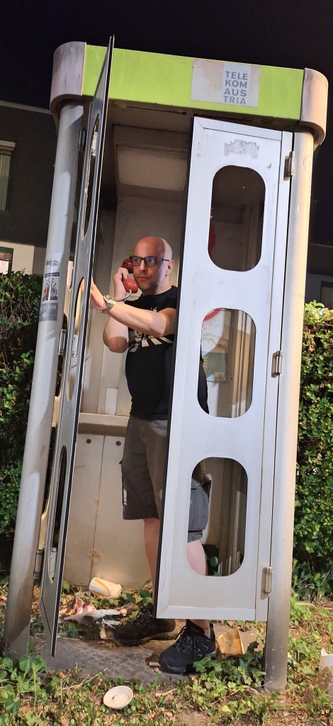 Spre norocul nostru, la 5 minute de mers pe jos găsim o pizzerie (eu sunt norocosul – pizzofil; Norbert nu e gurmand – conserva e preferata lui). Un om întreg la cap cântărește bine comanda… am specificat întreg la cap; prin urmare, ne ghiftuim – mâncare bună, prețuri normale, bere bună (toată tura am ales voit să nu iau în considerare posibila alergie la gluten, sîc!). Ospătarul, un tânăr din Afganistan, venit în Austria de mic copil, intră-n vorbă și rămâne surprins de „cât de bine vorbim noi germana” – colegu’ austro-ungar, că eu sunt de B1/2, dar cică „nuu, ca amândoi” – bine, fie, dacă tu zici. Și invariabil urmează discuțiile despre culturi și obiceiuri și cum toți știm inutilitatea războiului. Nu ai cum să eviți un subiect care plutește în aer când unul dintre interlocutori este refugiat de la vârsta la care eu mă jucam cu mașinuțele în nisip.